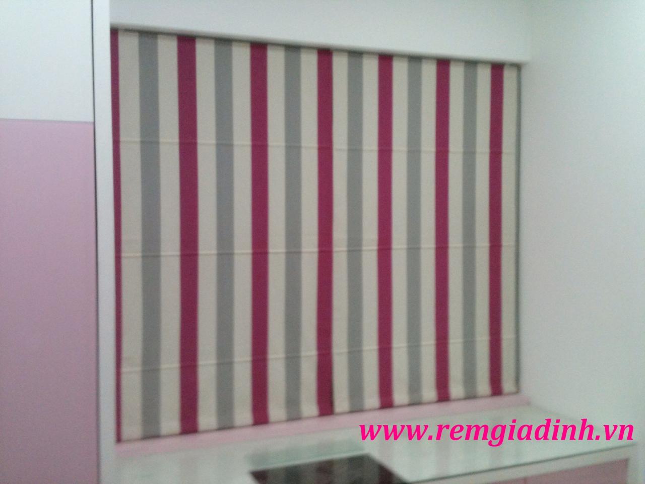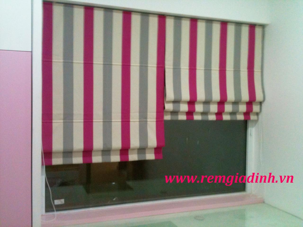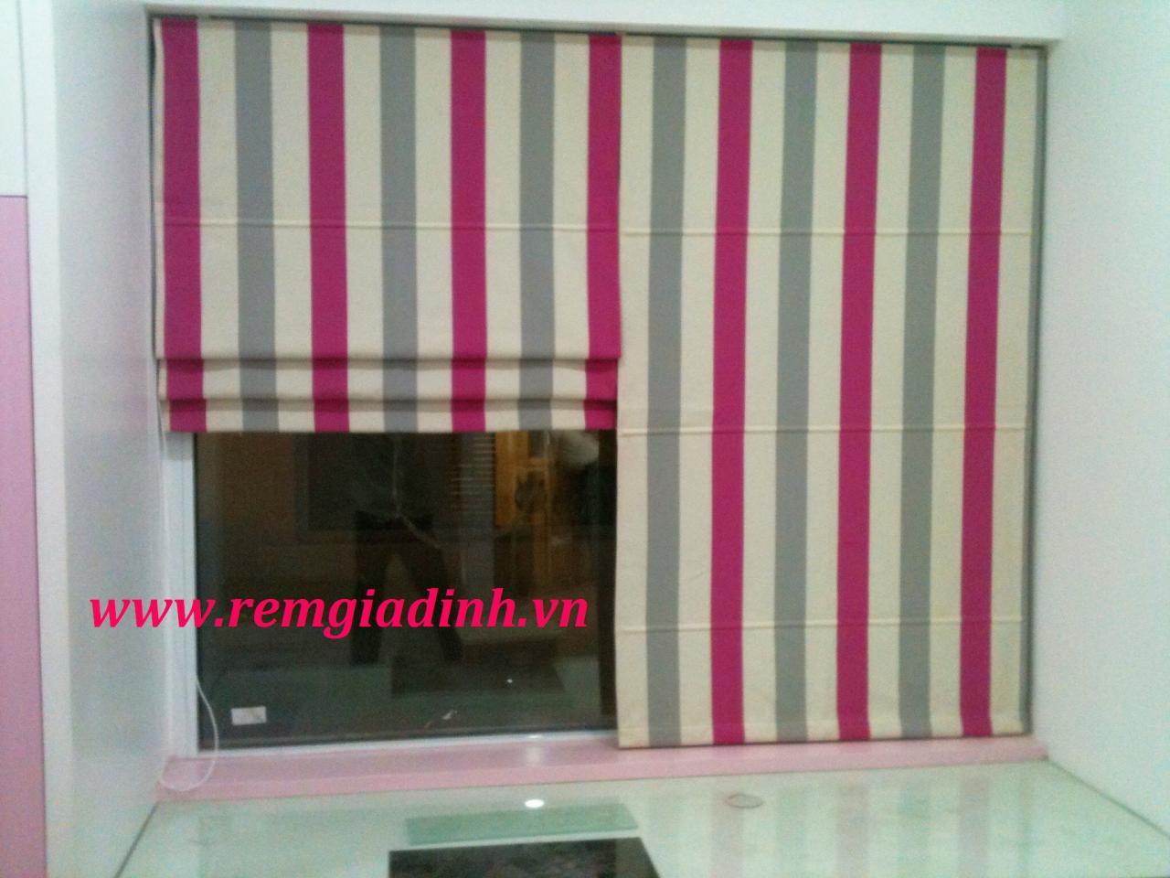 Rèm xếp lớp kẻ sọc ghi, hồng mã VARM-11. Chất liệu chính là dạng vải cotton cản sáng 100%.